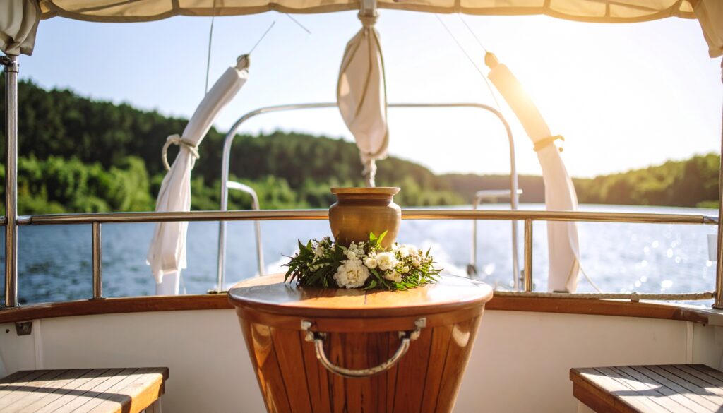 Die Urne wird an einem festgelegten Ort auf der Donau dem Fluss übergeben – auf Wunsch begleitet von einer kleinen Zeremonie.