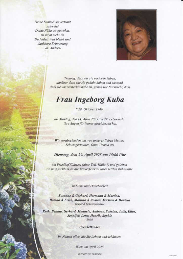 Todesanzeigen und Parten Wien und Umgebung