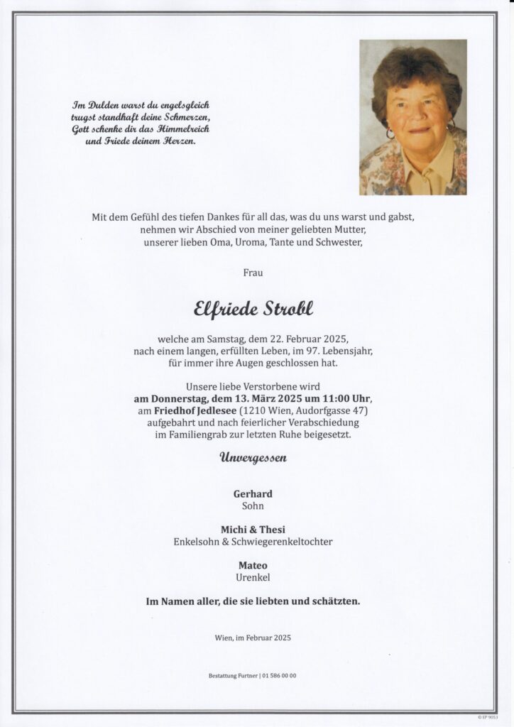 Todesanzeigen und Parten Wien und Umgebung