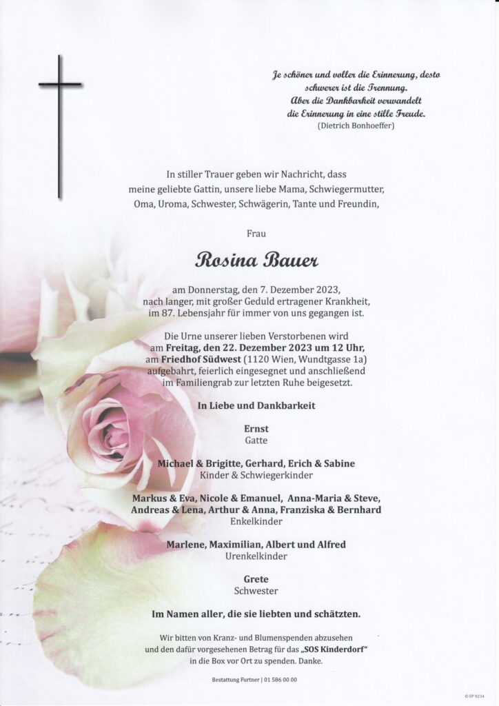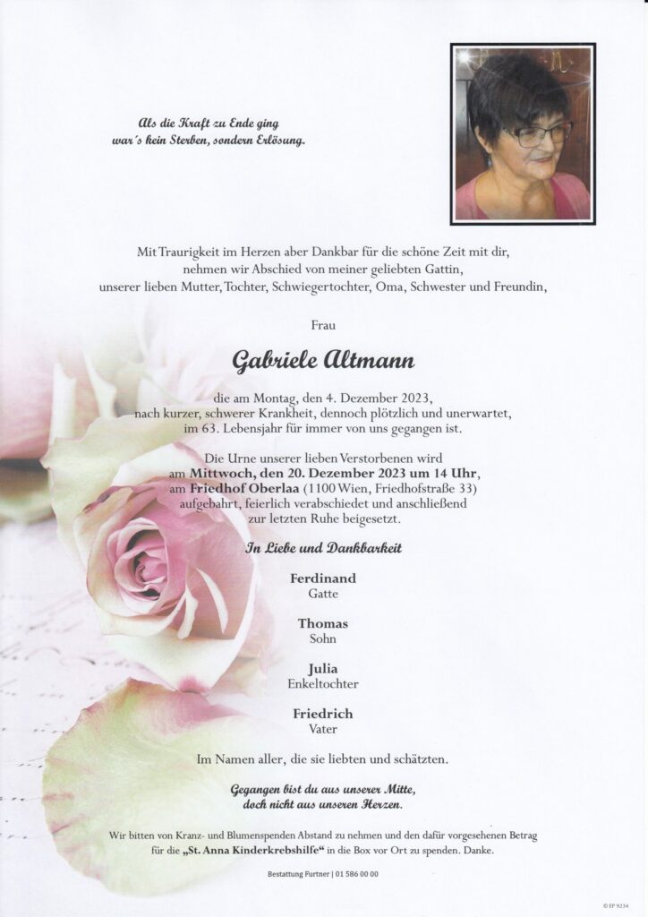 Todesanzeigen und Parten Wien und Umgebung