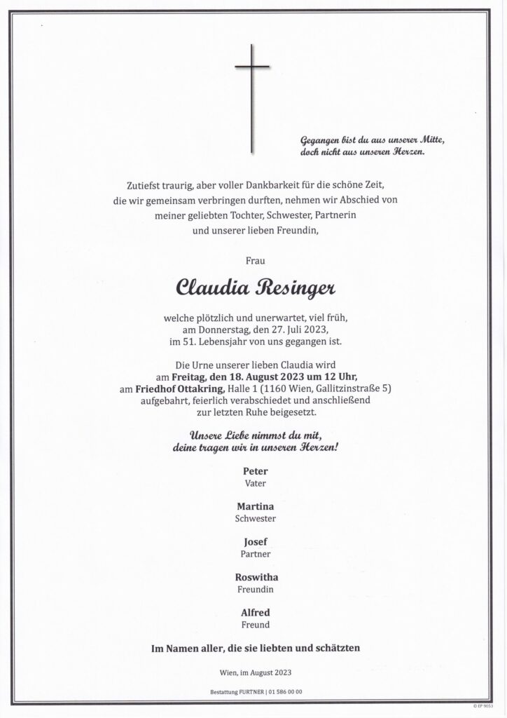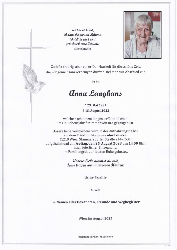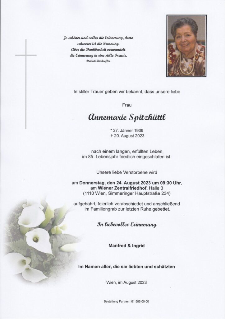 Todesanzeigen und Parten Wien und Umgebung