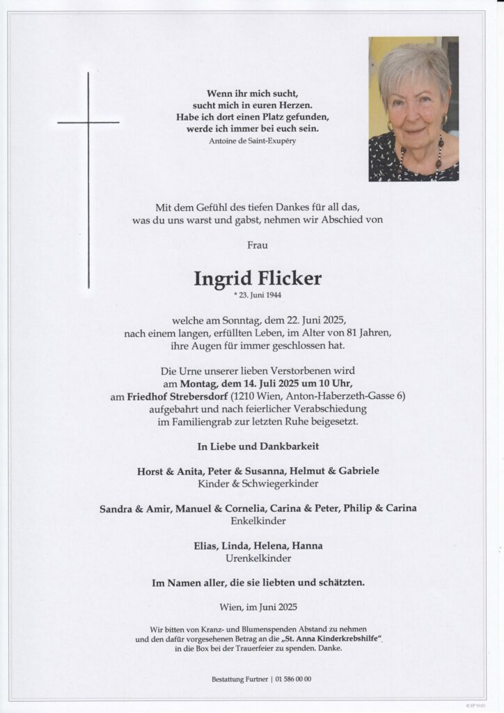 Unsere Gedenkseiten bieten Ihnen verschiedene Wege, Ihre Anteilnahme auszudrücken und der verstorbenen Person auf persönliche Weise zu gedenken – auch dann, wenn Sie nicht vor Ort Abschied nehmen können. Sie können die Parte online aufrufen, sich über Ort und Zeitpunkt der Trauerfeier informieren oder in Ruhe noch einmal die Worte lesen, die zum Abschied gewählt wurden.