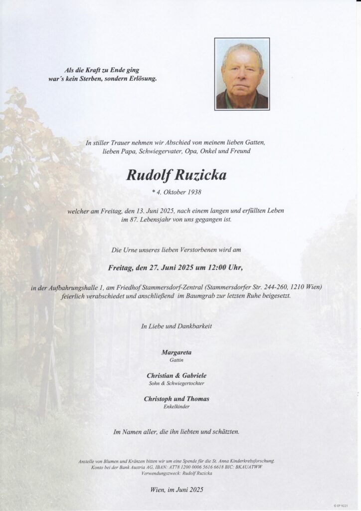 Todesanzeigen und Parten Wien und Umgebung