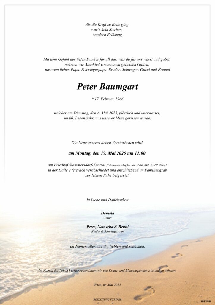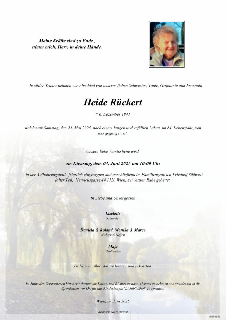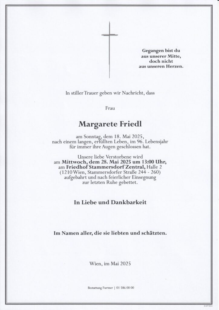 Unsere Gedenkseiten bieten Ihnen verschiedene Wege, Ihre Anteilnahme auszudrücken und der verstorbenen Person auf persönliche Weise zu gedenken – auch dann, wenn Sie nicht vor Ort Abschied nehmen können. Sie können die Parte online aufrufen, sich über Ort und Zeitpunkt der Trauerfeier informieren oder in Ruhe noch einmal die Worte lesen, die zum Abschied gewählt wurden.