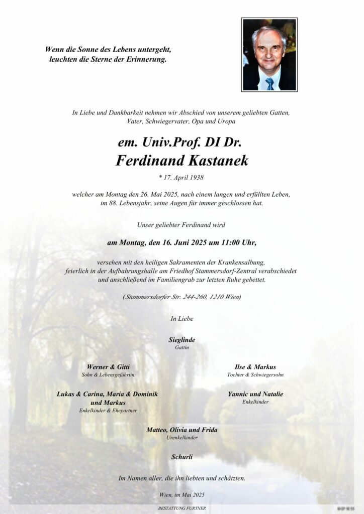 em. Univ. Prof. DI Dr. Ferdinand Kastanek